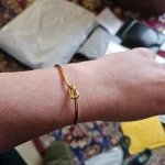 I’m fond of the bracelet’s petite size, suitable for my small wrist. However, I’ll overlook the slight gold tint near the knot and along part of the band, despite it being marketed as fully silver. It seems somewhat cheap, which likely explains the price.