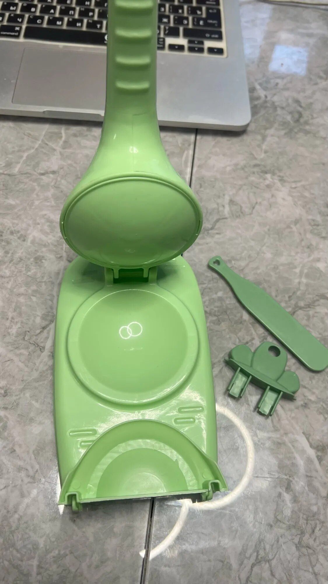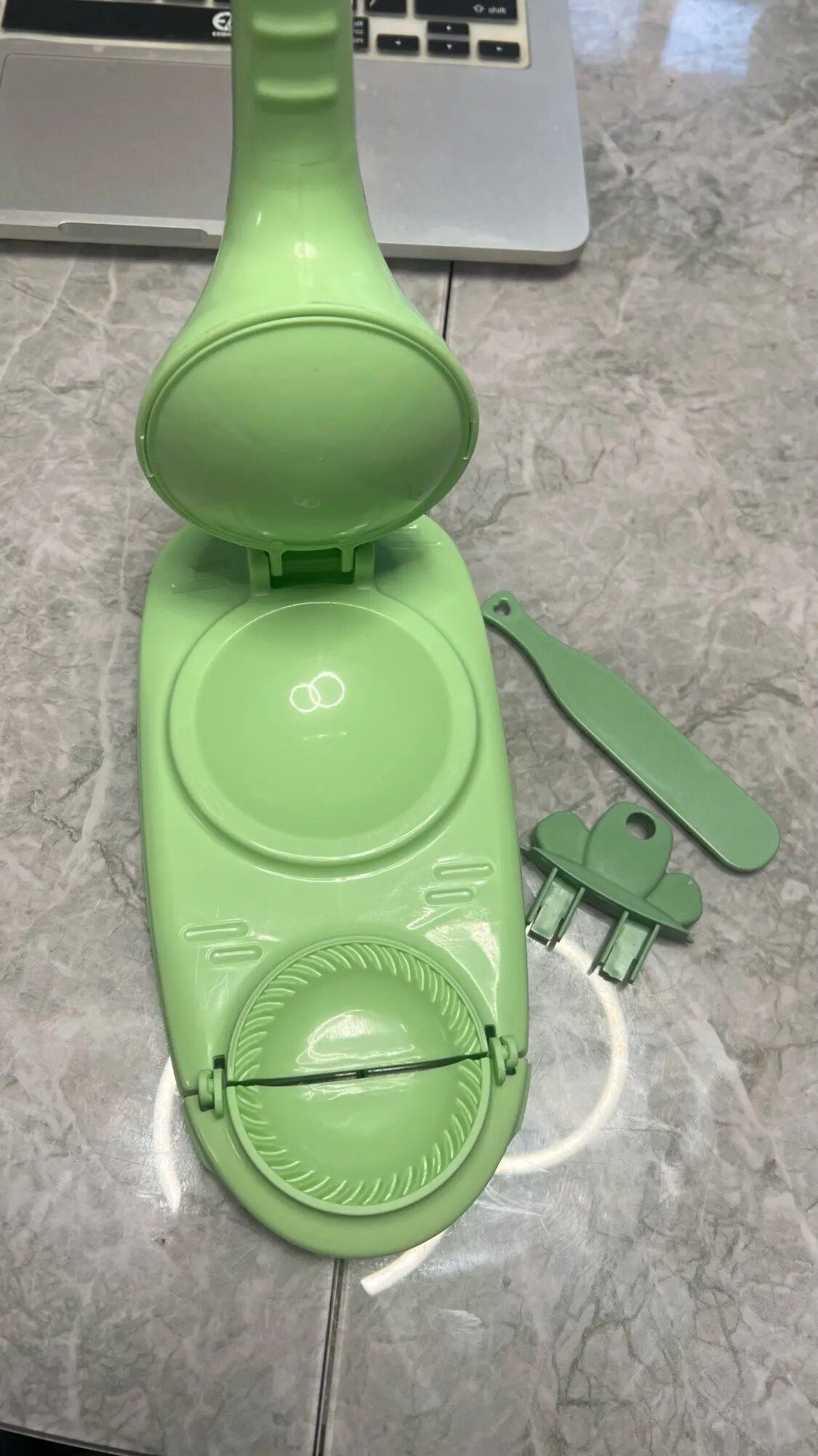 This dumpling maker proved to be highly effective for us. My wife enjoys preparing dumplings and empanadas, and this handy device efficiently flattens the dough and wraps it perfectly around the filling. To ensure a snug fit, it’s essential to place the gadget on a stable, non-slip surface. Cleaning it in the sink is a breeze, leaving it ready for future use. We hope it remains durable for a long time.