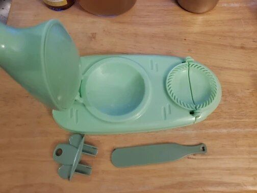 This dumpling maker is straightforward and convenient to use. My children enjoy using it, requiring minimal instruction. We typically use premade dough to produce large batches. Its lightweight nature ensures that what you see is what you get.