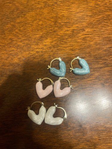 I bought these for my girlfriend as a surprise gift and she absolutely loved them! She wears them almost every day now. The trendy heart design adds a touch of elegance to her style while the high-quality zinc alloy ensures durability and comfort. Available in both silver and gold, they can easily match any outfit.